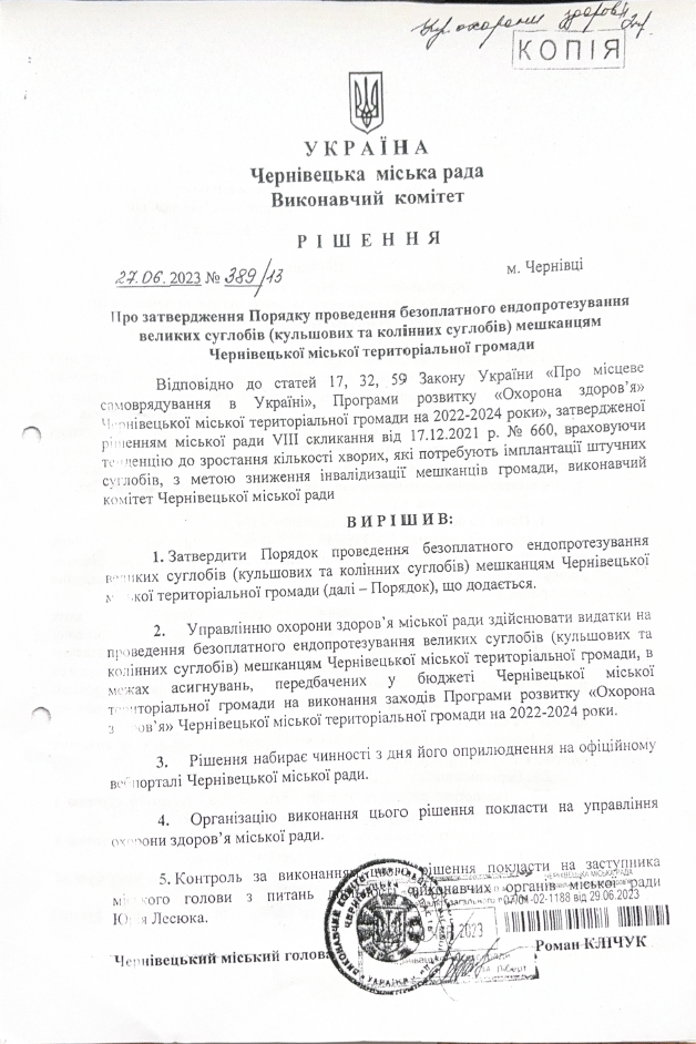 Рубрика надає інформацію про кількість закуплених державою та міською програмою ендопротезів та їх використання станом на 05 число кожного місяця